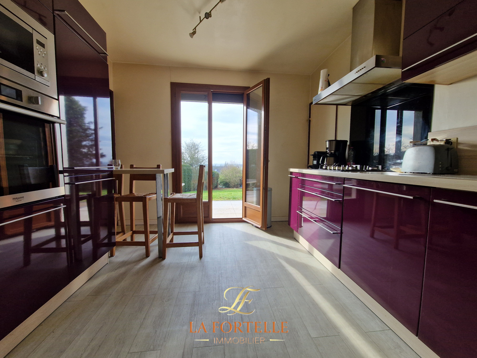 Entrée avec placards, séjour double avec poêle à granules, cuisine meublée et équipée, dégagement desservant 3 chambres, salle d'eau, toilettes. Grenier au-dessus, garage de 45m² pour 2 vitures. terrain clos sans vis à vis et au calme de 1500m².