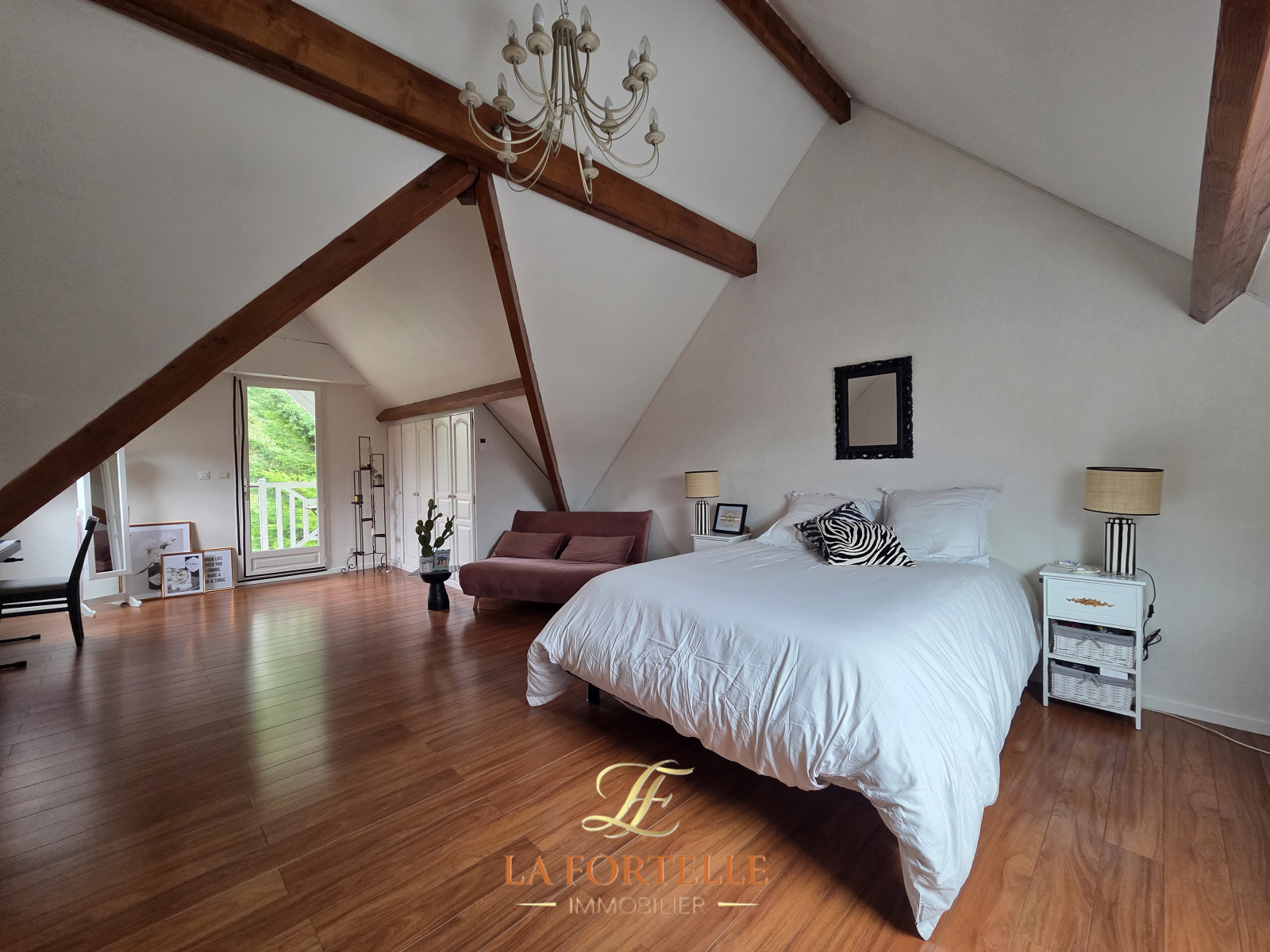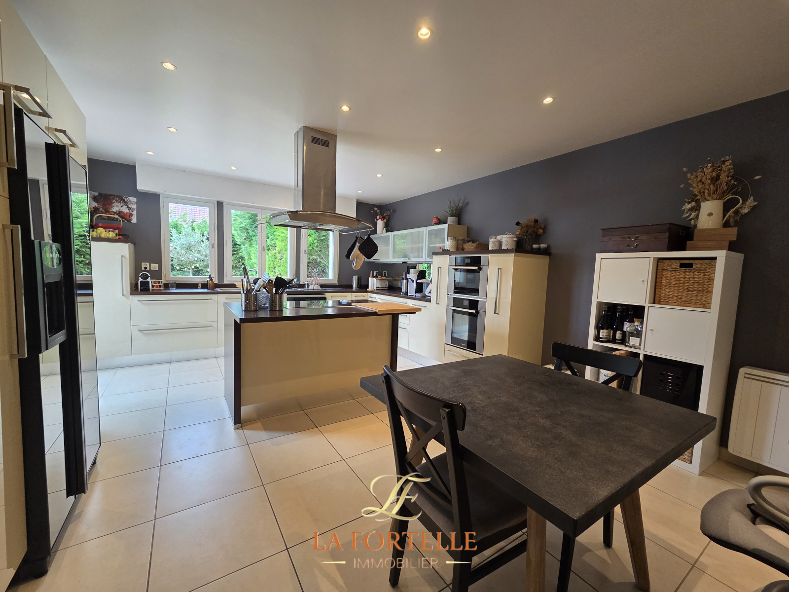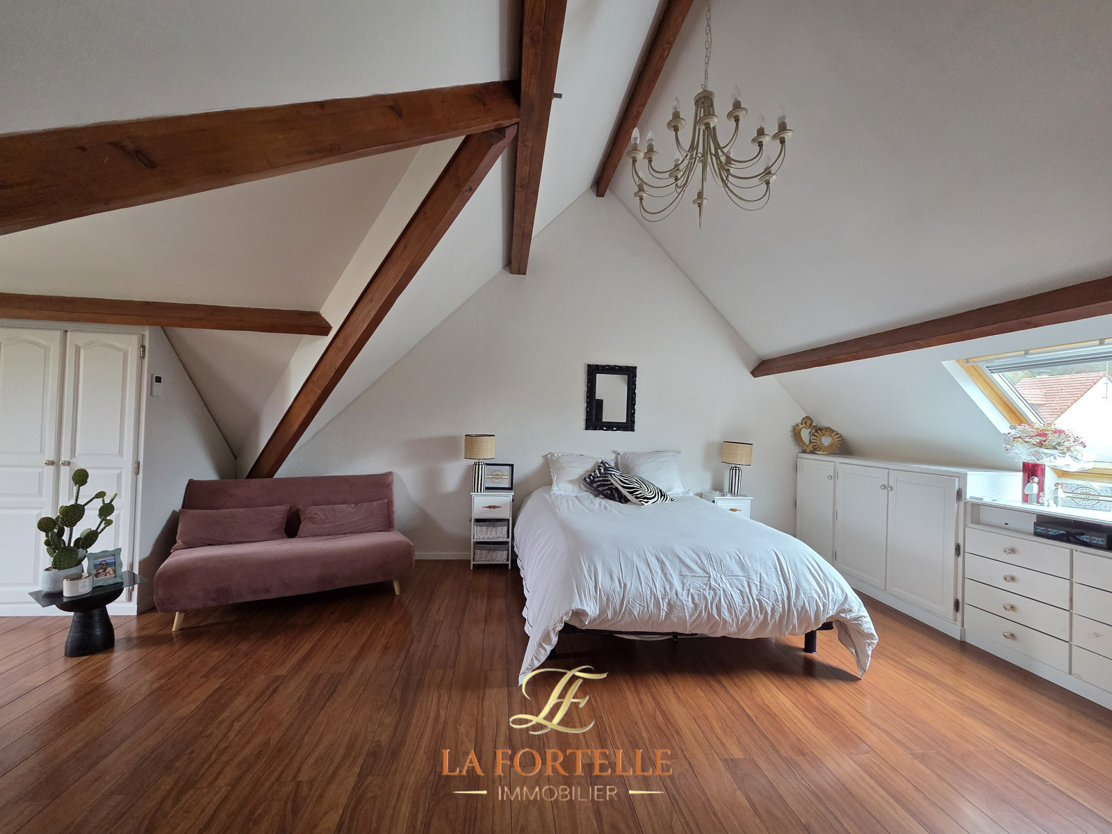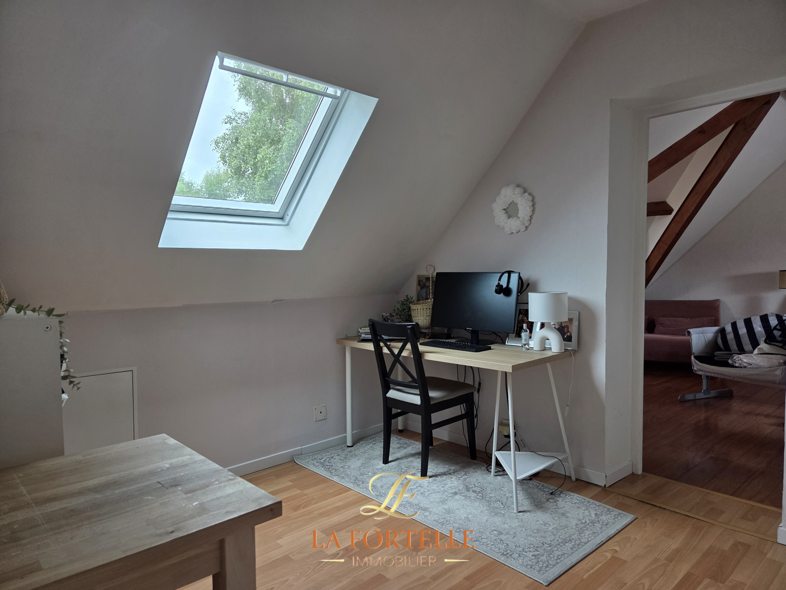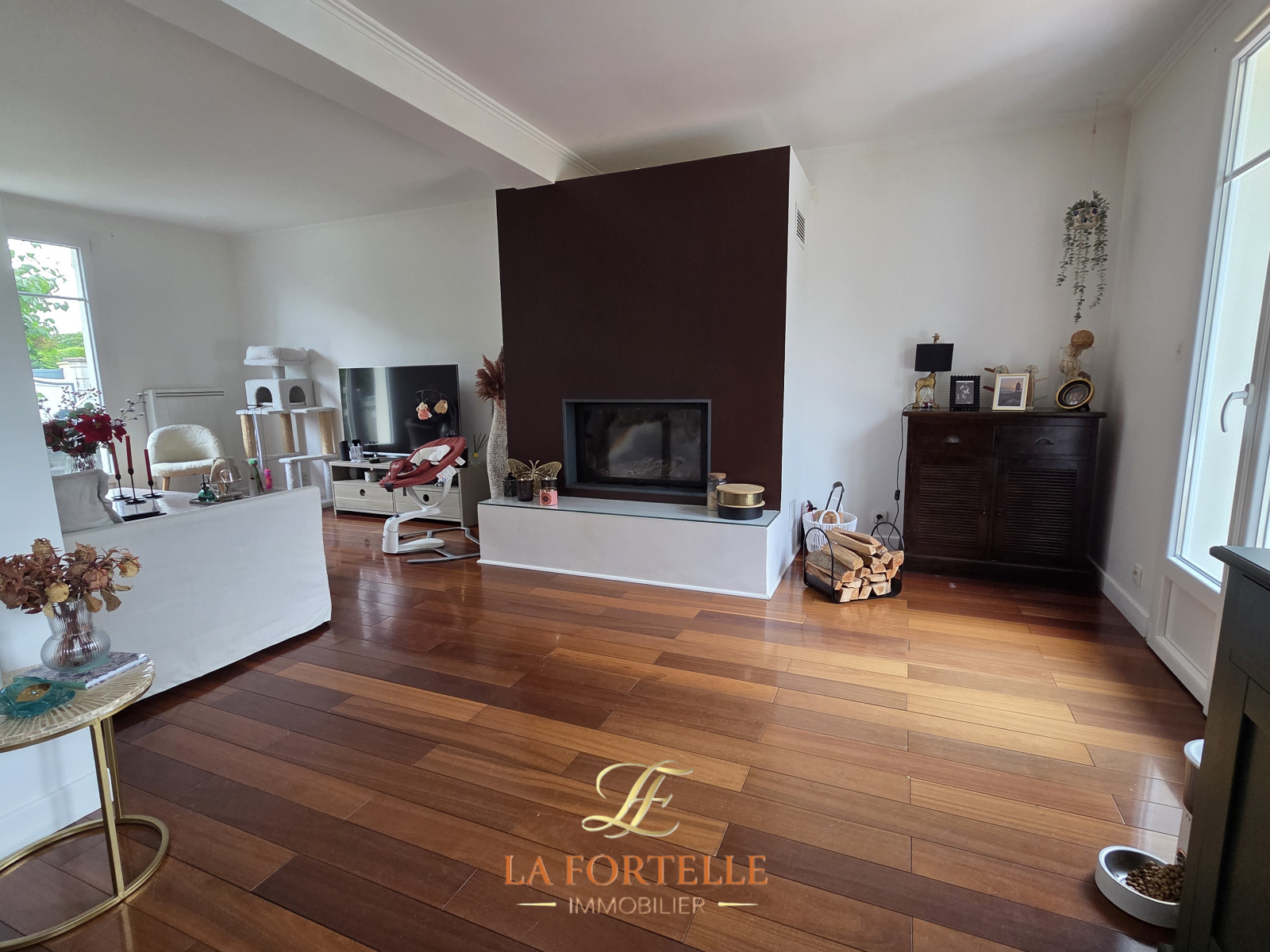 Entrée sur séjour de 55m² avec cheminée insert. Cuisine meublée et équipée de 26m², buanderie/salle de sport. Chambre avec salle d'eau, toilettes séparés.
